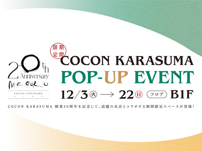 COCON KARASUMA開業20周年を記念して、話題の名店とコラボする2つの期間限定スペースが登場。