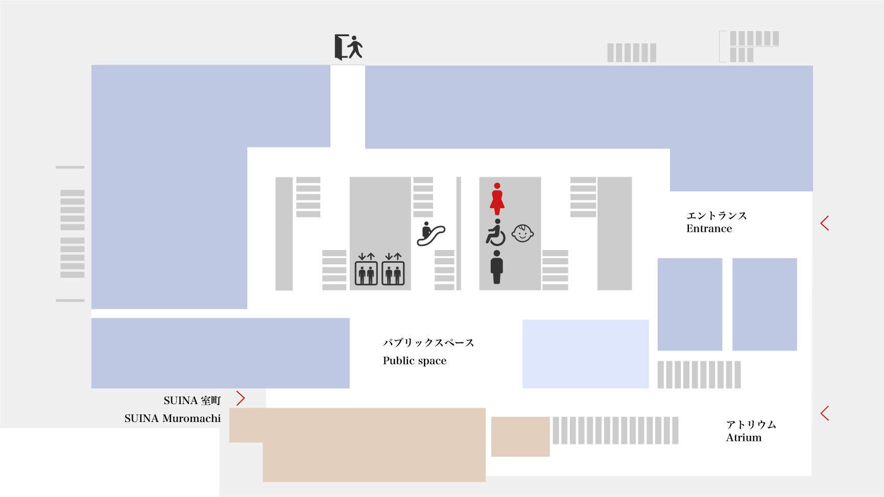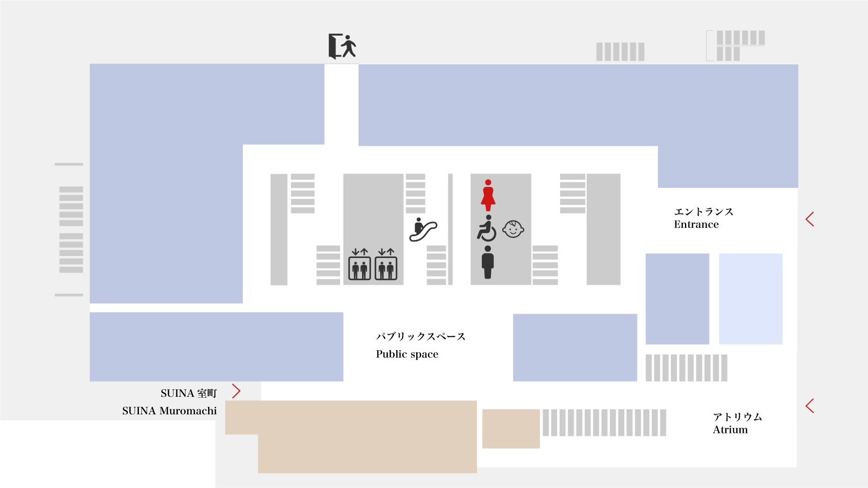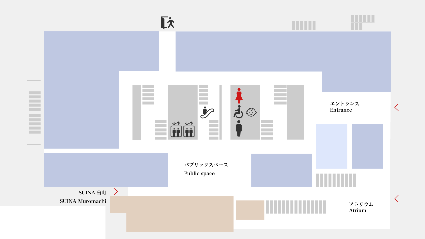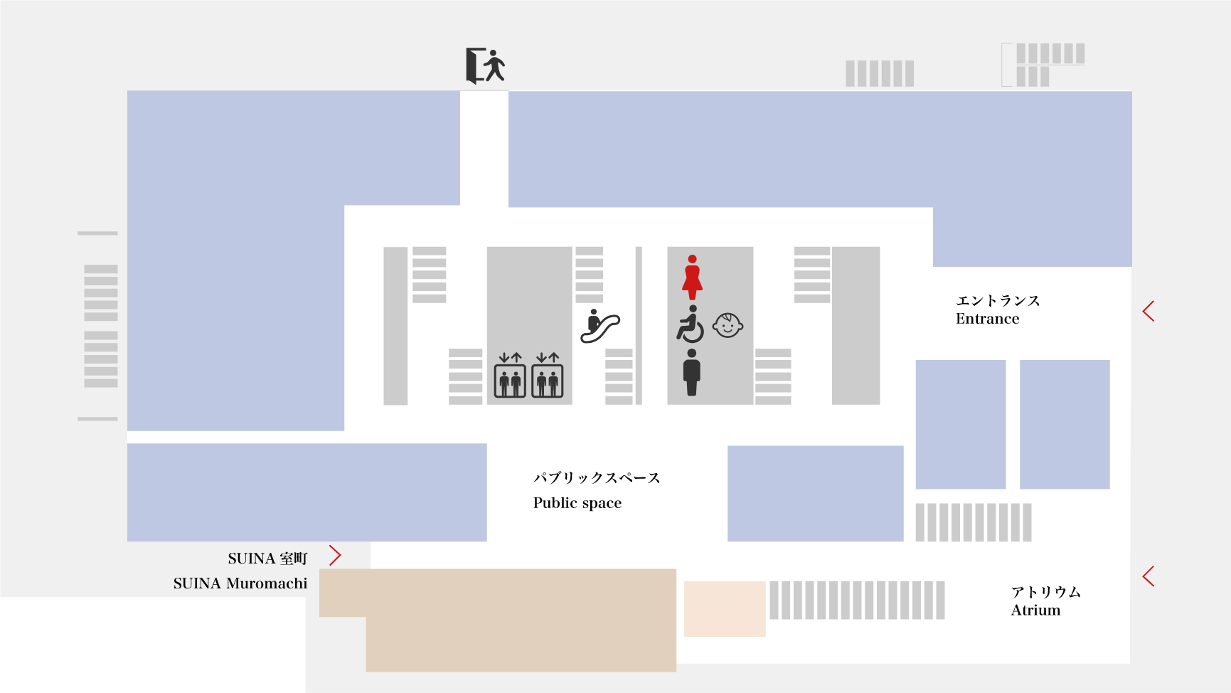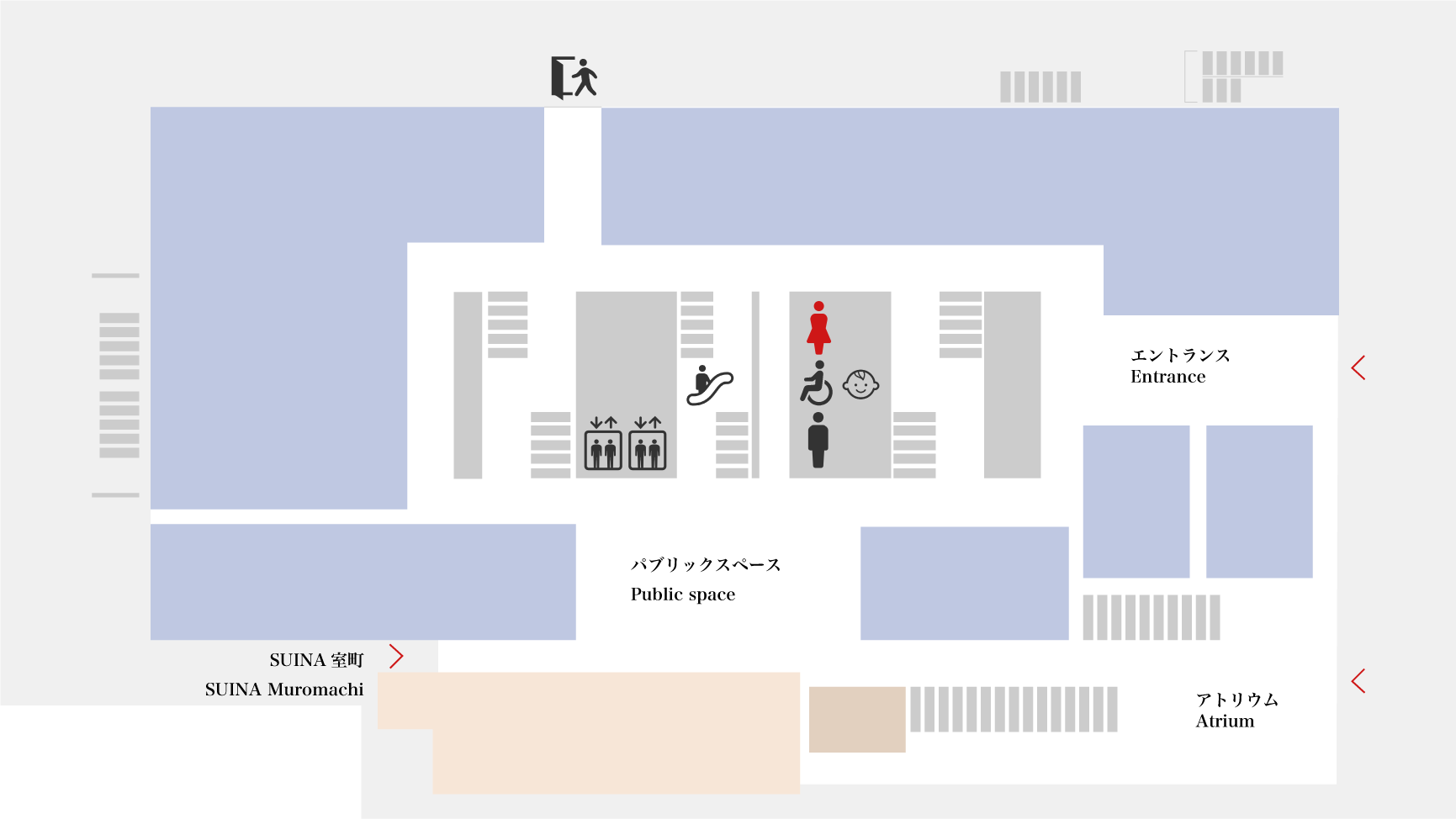 1・3Fにみんなのトイレ(多目的トイレ)を設けております。